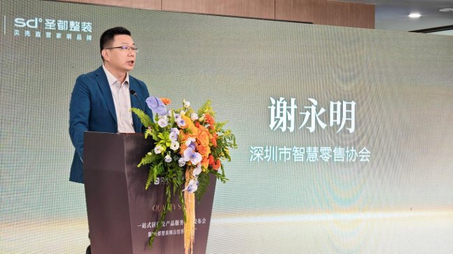 深圳智慧零售协会执行会长谢永明在致辞中表示:“过去消费者装修需要在建材市场比价、对着效果图想象,而圣都精品馆以“真户型、真需求、真落地“为核心逻辑,将1:1还原的实景样板间打造成可触可感的沉浸式生活场域,消费者在这里不是挑选单一建材,而是“预览”未来的家,极大压缩了决策成本,实现了智慧零售追求的极致效率与体验结合。”